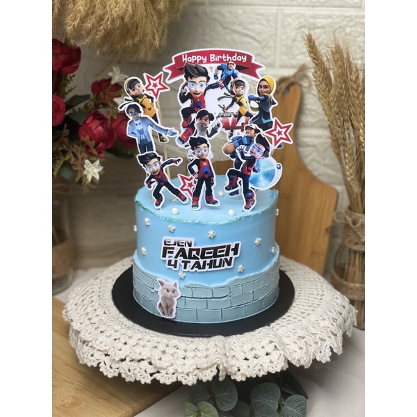 Happy birthday cake topper ejen ali decoration set party accessories banner hiasan kek design 2.